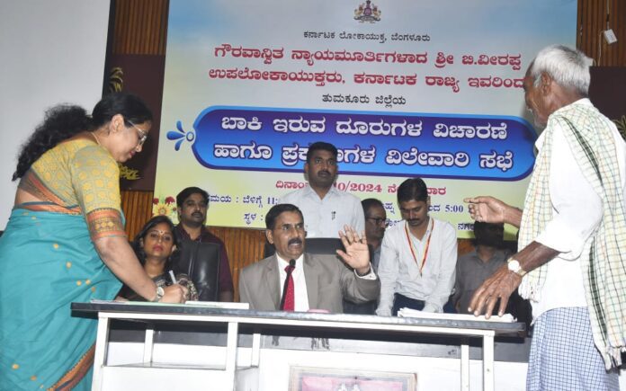 ತುಮಕೂರು ಜಿಲ್ಲಾ ಪಂಚಾಯತಿ ಸಭಾಂಗಣದಲ್ಲಿ ಶನಿವಾರ ಹಮ್ಮಿಕೊಂಡಿದ್ದ ಲೋಕಾಯುಕ್ತ ಪ್ರಕರಣಗಳ ತನಿಖೆ ಮತ್ತು ವಿಲೇವಾರಿ ಸಭೆಯಲ್ಲಿ ಈ ಪ್ರಸಂಗ ಜರುಗಿತು. ದೂರುದಾರರು ಮತ್ತು ಪ್ರತಿ ದೂರುದಾರರ ಸಮ್ಮುಖದಲ್ಲಿ ಪ್ರಕರಣಗಳ ವಿಚಾರಣೆ ನಡೆಸಿ, ಪಿಡಿಓ ವಿನಾಯಕ ಅವರಿಗೆ ಎಚ್ಚರಿಕೆ ನೀಡಿದ ಉಪ ಲೋಕಾಯುಕ್ತ ಬಿ. ವೀರಪ್ಪ ಅವರು ಸಾರ್ವಜನಿಕ ಸೇವೆಯಲ್ಲಿ ಸುಳ್ಳು ದಾಖಲೆಗಳನ್ನು ಸೃಷ್ಟಿಸಿ ವಂಚಿಸುವುದು ಅಪರಾಧ. ಇಂತಹ ಅಪರಾಧಗಳನ್ನು ಲೋಕಾಯುಕ್ತ ಸಹಿಸುವುದಿಲ್ಲ. ಸಾರ್ವಜನಿಕರನ್ನು ವಂಚಿಸುವ ಅಧಿಕಾರಿಗಳ ಮೇಲೆ ಶಿಸ್ತು ಕ್ರಮ ಕೈಗೊಳ್ಳಲಾಗುವುದು ಎಂದು ಸೂಚಿಸಿದರು.