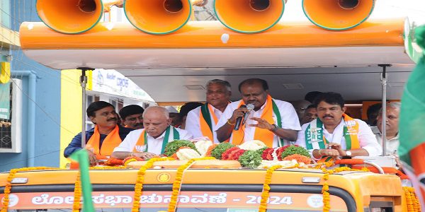 ಎನ್ಡಿಎ ಮೈತ್ರಿಕೂಟದ ತುಮಕೂರು ಲೋಕಸಭಾ ಕ್ಷೇತ್ರ ಅಭ್ಯರ್ಥಿ ವಿ ಸೋಮಣ್ಣ ನಾಮಪತ್ರ ಸಲ್ಲಿಸಿದ್ದಾರೆ. ಅವರು ನಾಮಪತ್ರ ಸಲ್ಲಿಸುವಾಗ ಮಾಜಿ ಮುಖ್ಯಮತ್ರಿ ಬಿ.ಎಸ್.ಯಡಿಯೂರಪ್ಪ ಮತ್ತು ಎಚ್.ಡಿ ಕುಮಾರಸ್ವಾಮಿ ಜೊತೆಗಿದ್ದು, ಸಾಥ್ ನೀಡಿದ್ದಾರೆ.