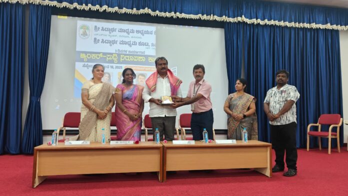 ತುಮಕೂರು ನಗರದ ಶ್ರೀ ಸಿದ್ಧಾರ್ಥ ತಾಂತ್ರಿಕ ಮಹಾವಿದ್ಯಾಲಯ ಆವರಣದಲ್ಲಿ ಶ್ರೀ ಸಿದ್ಧಾರ್ಥ ಮಾಧ್ಯಮ ಅಧ್ಯಯನ ಕೇಂದ್ರದ ವತಿಯಿಂದ ಆಯೋಜಿಸಲಾಗಿದ್ದ ಮೂರು ದಿನಗಳ ಆಂಕರಿಂಗ್ ಸುದ್ದಿ ನಿರೂಪಣಾ ಕಾರ್ಯಗಾರದ ಸಮಾರೂಪ ಸಮಾರಂಭಕ್ಕೆ ಮುಖ್ಯ ಅತಿಥಿಯಾಗಿ ಆಗಮಿಸಿದ್ದ ಅವರು ‘ವಿಷಯದ ಮಹತ್ವದ ಅನುಗುಣವಾಗಿ ಸುದ್ದಿ ಮಾಡುವುದು ಒಬ್ಬ ಪತ್ರಕರ್ತನ ಜವಾಬ್ದಾರಿ. ಆ ಹಾದಿಯಲ್ಲಿ ವಿದ್ಯಾರ್ಥಿಗಳು ಮುನ್ನಡೆಯಿರಿ ಎಂದು ವಿದ್ಯಾರ್ಥಿಗಳಿಗೆ ಕಿವಿ ಮಾತು ತಿಳಿಸಿದರು.