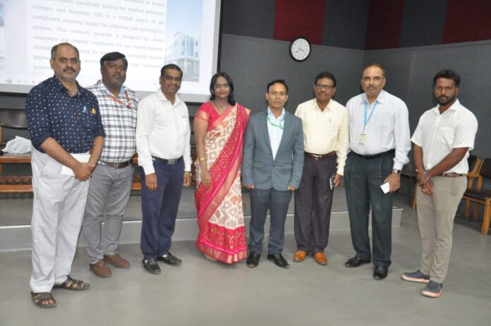ತುಮಕೂರು ನಗರದ ಅಗಳಕೋಟೆಯಲ್ಲಿರುವ ಶ್ರೀ ಸಿದ್ಧಾರ್ಥ ವೈದ್ಯಕೀಯ ಮಹಾವಿದ್ಯಾಲಯದಲ್ಲಿ ಮಂಗಳವಾರ ಸಾಹೇ ವಿಶ್ವವಿದ್ಯಾನಿಲಯ ಹಾಗೂ ಆದಾಯ ತೆರಿಗೆ ಇಲಾಖೆಯ ಸಹಯೋಗದಲ್ಲಿ ಆಯೋಜಿಸಿದ್ದ ‘ ಟಿಡಿಎಸ್ ಜಾಗೃತಿ’ ಕುರಿತು ಕಾರ್ಯಕ್ರಮದಲ್ಲಿ ಮಾತನಾಡಿದ ಅವರು, ತೆರಿಗೆ ಪಾವತಿಯ ವಿವಿಧ ಹಂತಗಳನ್ನು ವಿವರಿಸಿದರು.