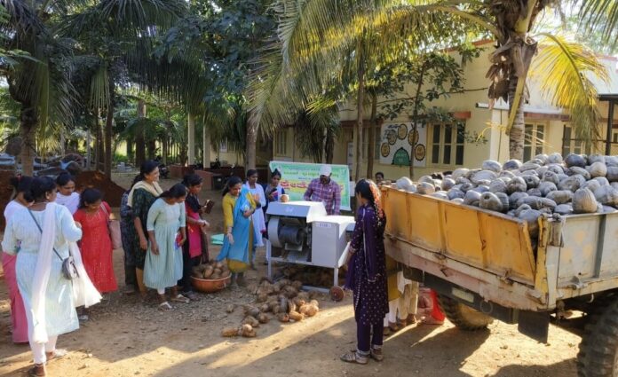 ತೆಂಗಿನ ಕಾಯಿಯು ರಾಜ್ಯದ ಅತ್ಯಂತ ಉಪಯುಕ್ತ ಮತ್ತು ದೀರ್ಘಕಾಲಿಕ ಬೆಳೆಗಳಲ್ಲಿ ಒಂದು. ತುಮಕೂರು ಸೇರಿದಂತೆ ರಾಜ್ಯದ ಸಾವಿರಾರು ಜನರ ಆರ್ಥಿಕ, ಸಾಮಾಜಿಕ ಮತ್ತು ಸಾಂಸ್ಕೃತಿಕ ಚಟುವಟಿಕೆಗಳಲ್ಲಿ ತೆಂಗಿನಕಾಯಿ ಪ್ರಮುಖ ಪಾತ್ರ ವಹಿಸುತ್ತದೆ. ತೆಂಗಿನಕಾಯಿ ಮಾನವನಿಗೆ ಆಹಾರ, ಖಾದ್ಯ ಎಣ್ಣೆ, ಕೈಗಾರಿಕಾ ಎಣ್ಣೆ ಮತ್ತು ಆರೋಗ್ಯ ಪಾನೀಯಗಳನ್ನು ಒದಗಿಸುತ್ತದೆ ಹಾಗೂ ತೆಂಗಿನ ಮರದ ಎಲ್ಲಾ ಭಾಗಗಳು ಒಂದಲ್ಲ ಒಂದು ರೀತಿಯಲ್ಲಿ ಉಪಯುಕ್ತವಾಗಿದೆ. ಆದರೆ ತೆಂಗಿನ ಸಿಪ್ಪೆ ಸುಲಿಯುವುದು ಮಾತ್ರ ತ್ರಾಸದಾಯಕ. ಈ ಸಮಸ್ಯೆಗೆ ಸಿಪ್ಪೆ ಸುಲಿಯುವ ಯಂತ್ರ ಬೆಳೆಗಾರರ ಪಾಲಿಗೆ ಒಂದು ವರದಾನವಾಗಿದೆ.