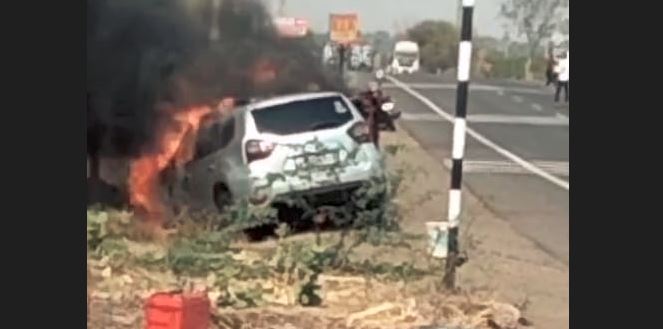 ಸಿಂಧಗಿಯಿಂದ ವಿಜಯಪುರಕ್ಕೆ ಬರುತ್ತಿದ್ದ ವೇಳೆ ಕಾರಿನಲ್ಲಿ ಏಕಾಏಕಿ ಬೆಂಕಿ ಕಾಣಿಸಿಕೊಂಡಿದೆ. ತಕ್ಷಣವೇ ಕಾರಿನಲ್ಲಿದ ಇಬ್ಬರು ಇಳಿದುಕೊಂಡು ಪ್ರಾಣ ರಕ್ಷಣೆ ಮಾಡಿಕೊಂಡಿದ್ದಾರೆ.