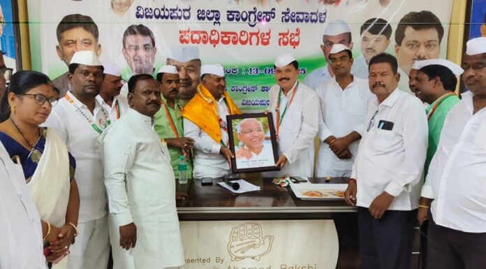 ವಿಜಯಪುರ ಜಿಲ್ಲಾ ಕಾಂಗ್ರೆಸ್ ಕಾರ್ಯಾಲಯದಲ್ಲಿ ವಿಜಯಪುರ ಜಿಲ್ಲಾ ಕಾಂಗ್ರೆಸ್ ಸೇವಾದಳ ಸಮಿತಿಯ ಜಿಲ್ಲಾ ಹಾಗೂ ಬ್ಲಾಕ್ ಕಾಂಗ್ರೆಸ್ ಪ್ರಚಾರ ಸಮಿತಿ ಅಧ್ಯಕ್ಷರು, ಪದಾಧಿಕಾರಿಗಳ ಸಭೆಯಲ್ಲಿ ಅವರು ಮಾತನಾಡಿದರು.
