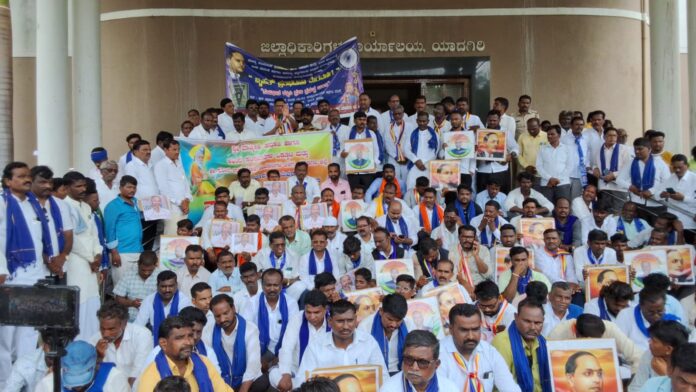 ಸಚಿವ ಪ್ರಿಯಾಂಕ್ ಖರ್ಗೆ ಹಾಗೂ ಅವರ ಕುಟುಂಬದ ವಿರುದ್ಧ ಜೀವ ಬೆದರಿಕೆ ಹಾಕಿ, ಅವಾಚ್ಯ ಶಬ್ದಗಳಿಂದ ನಿಂದನೆ ನಡೆಸಿದ ಮನುವಾದಿ ಮನಸ್ಥಿತಿಯನ್ನು ಖಂಡಿಸಿ, ಸಂವಿಧಾನವನ್ನು ರಕ್ಷಿಸಿ ಪ್ರಜಾಪ್ರಭುತ್ವವನ್ನು ಉಳಿಸಬೇಕೆಂದು ಆಗ್ರಹಿಸಿ, ಜೊತೆಗೆ ಬಿಜೆಪಿ ನಾಯಕ ರಮೇಶ ಕತ್ತಿ ಅವರ ಅವಹೇಳನಕಾರಿ ಹೇಳಿಕೆಗಳನ್ನು ಖಂಡಿಸಿ ಯಾದಗಿರಿಯಲ್ಲಿ ಬೃಹತ್ ಪ್ರತಿಭಟನೆ ನಡೆಯಿತು.