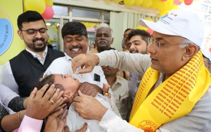 ಮಕ್ಕಳಿಗೆ 2 ಹನಿ ಪಲ್ಸ್ ಪೋಲಿಯೋ ಹಾಕುವ ಮೂಲಕ ಬೆಂಗಳೂರಿನಲ್ಲಿ ಪಲ್ಸ್ ಪೋಲಿಯೊ ಅಭಿಯಾನಕ್ಕೆ ಚಾಲನೆ ನೀಡಿದರು. ಕಾರ್ಯಕ್ರಮದಲ್ಲಿ ರಾಷ್ಟ್ರೀಯ ಆರೋಗ್ಯ ಮಿಷನ್ ನಿರ್ದೇಶಕರಾದ ನವೀನ್ ಭಟ್ ಪಾಲ್ಗೊಂಡಿದ್ದರು.
