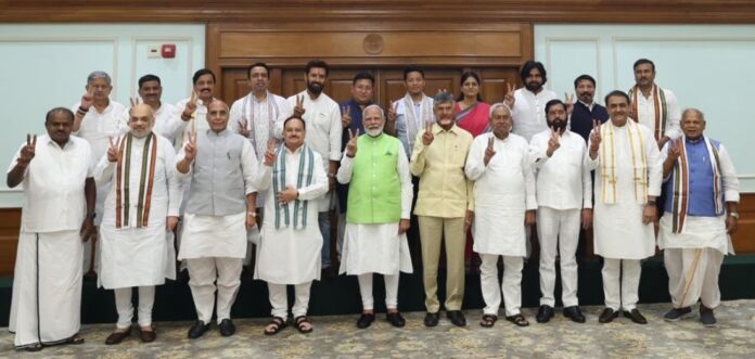 ಸರ್ಕಾರ ರಚನೆ ಸಂಬಂಧ ಚರ್ಚೆಗಾಗಿ ಇಂದು ದೆಹಲಿಯ ನರೇಂದ್ರ ಮೋದಿಯವರ ನಿವಾಸದಲ್ಲಿ ಎನ್ಡಿಎ ನಾಯಕರ ಸಭೆ ಕರೆಯಲಾಗಿತ್ತು. ಈ ಸಭೆಯಲ್ಲಿ ಬಿಹಾರ ಸಿಎಂ ನಿತೀಶ್ ಕುಮಾರ್, ಟಿಡಿಪಿ ಮುಖ್ಯಸ್ಥ ಚಂದ್ರಬಾಬು ನಾಯ್ಡು ಸೇರಿದಂತೆ ಎಲ್ಲ ಎನ್ಡಿಎ ನಾಯಕರು ಭಾಗವಹಿಸಿದ್ದರು.