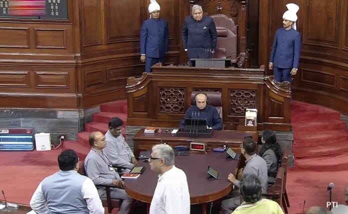 ಈ ನಡುವೆ ಡೆರೆಕ್ ಓಬ್ರಿಯಾನ್ ಸಹಿತ ವಿಪಕ್ಷಗಳ ಸದಸ್ಯರು, ‘ಸರ್ವಾಧಿಕಾರಿ ನಡೆ ಸರಿಯಲ್ಲ’ ಎಂದು ಘೋಷಣೆ ಕೂಗ ತೊಡಗಿದರು. ಈ ಹಿನ್ನೆಲೆಯಲ್ಲಿ ರಾಜ್ಯಸಭಾ ಅಧ್ಯಕ್ಷ ಜಗದೀಪ್ ಧನ್ಕರ್ ಕಲಾಪವನ್ನು ಮತ್ತೆ 2 ಗಂಟೆಗೆ ಮುಂದೂಡಿದರು.