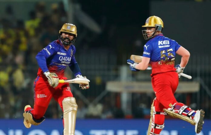ಬೆಂಗಳೂರು ತಂಡವು ಮುಸ್ತಫಿಝ್ ರಹ್ಮಾನ್ ಬೌಲಿಂಗ್ಗೆ ಕುಸಿದ ಪರಿಣಾಮ 78 ರನ್ಗಳಿಗೆ 5 ವಿಕೆಟ್ ಕಳೆದುಕೊಂಡು ಸಂಕಷ್ಟದಲ್ಲಿತ್ತು. ಈ ವೇಳೆ ಜೊತೆಯಾದ ಎಡಗೈ ಬ್ಯಾಟರ್ ಅನುಜ್ ರಾವತ್ ಹಾಗೂ ದಿನೇಶ್ ಕಾರ್ತಿಕ್ ಜೋಡಿಯು ಉತ್ತಮ ಜೊತೆಯಾಟ ನಡೆಸಿದ ಪರಿಣಾಮ ಚೆನ್ನೈಗೆ 174 ರನ್ಗಳ ಸವಾಲಿನ ಗುರಿ ನೀಡುವಲ್ಲಿ ಸಫಲವಾಯಿತು. ಈ ಜೋಡಿಯು 57 ಎಸೆತಗಳಲ್ಲಿ 97 ರನ್ಗಳನ್ನು ಕಲೆ ಹಾಕಿತು.