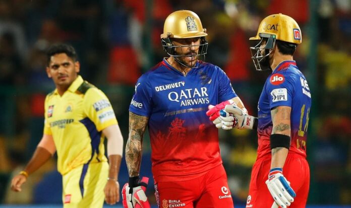 ಆ ಬಳಿಕ ಉತ್ತಮ ಬ್ಯಾಟಿಂಗ್ ನಡೆಸಿದ ಆರಂಭಿಕ ಹಾಗೂ ಸ್ಟಾರ್ ಬ್ಯಾಟರ್ ವಿರಾಟ್ ಕೊಹ್ಲಿ ಹಾಗೂ ಫಾಫ್ ಡು ಪ್ಲೆಸಿ ಮೊದಲ ವಿಕೆಟ್ಗೆ 78 ರನ್ಗಳ ಜೊತೆಯಾಟ ನಡೆಸಿದರು.