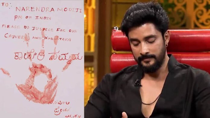 ಕನ್ನಡ ಚಿತ್ರರಂಗದ ನಟ-ನಟಿಯರೂ ಕಾವೇರಿ ಹೋರಾಟಕ್ಕೆ ಬೆಂಬಲ ನೀಡಿದ್ದಾರೆ. ಪ್ರತಿಭಟನೆಯಲ್ಲಿ ಭಾಗಿಯಾಗಿದ್ದಾರೆ. ಇದೆಲ್ಲದರ ನಡುವೆ, ಕಾವೇರಿ ವಿಚಾರದಲ್ಲಿ ರಾಜ್ಯಕ್ಕೆ ನ್ಯಾಯ ಒದಗಿಸಬೇಕೆಂದು ಒತ್ತಾಯಿಸಿ ನಟ ನೆನಪಿರಲಿ ಪ್ರೇಮ್ ಅವರು ಪ್ರಧಾನಿ ನರೇಂದ್ರ ಮೋದಿಗೆ ರಕ್ತದಲ್ಲಿ ಪತ್ರ ಬರೆದಿದ್ದಾರೆ.