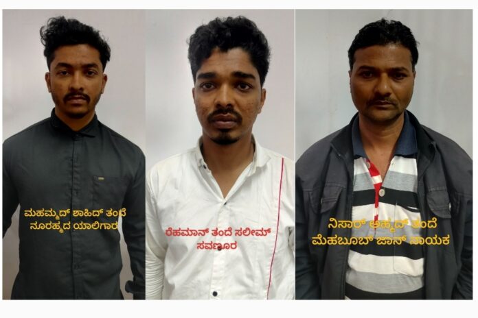 ಹುಬ್ಬಳ್ಳಿಯ ಗಬ್ಬೂರ ಕುಂದಗೋಳ ಕ್ರಾಸ್ ಹತ್ತಿರ ಗಾಂಜಾ ಮಾರಾಟ ಮಾಡುತ್ತಿದ್ದ 3 ಜನ ಆರೋಪಿಗಳನ್ನು ಬೆಂಡಿಗೇರಿ ಠಾಣೆಯ ಪೊಲೀಸರು ಮತ್ತು ಸಿಸಿಬಿ ವಿಭಾಗದ ಅಧಿಕಾರಿ ಮತ್ತು ಸಿಬ್ಬಂದಿಗಳು ಮಂಗಳವಾರ ಬಂಧಿಸಿದ್ದಾರೆ.