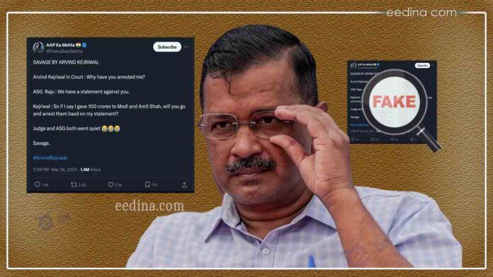 ದೆಹಲಿ ಮುಖ್ಯಮಂತ್ರಿ ಅರವಿಂದ ಕೇಜ್ರಿವಾಲ್ ಅವರ ಬಂಧನ ದೇಶಾದ್ಯಂತ ಭಾರೀ ವಿರೋಧ-ಚರ್ಚೆಗೆ ಗುರಿಯಾಗಿದೆ. ಇದೇ ವೇಳೆ, ಕೇಜ್ರಿವಾಲ್ ಹೆಸರಿನಲ್ಲಿ ಪೋಸ್ಟ್ವೊಂದು ಸಾಮಾಜಿಕ ಜಾಲತಾಣದಲ್ಲಿ ಸಿಕ್ಕಾಪಟ್ಟೆ ವೈರಲ್ ಆಗುತ್ತಿದೆ. ವೈರಲ್ ಪೋಸ್ಟ್ನಲ್ಲಿ, 'ನ್ಯಾಯಾಲಯದಲ್ಲಿ ವಿಚಾರಣೆ...