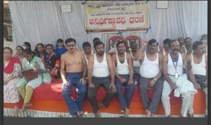 ದಾವಣಗೆರೆಯ ಜಿಲ್ಲಾಧಿಕಾರಿ ಕಚೇರಿ ಮುಂದೆ ಶುಕ್ರವಾರ ಬೆಳಿಗ್ಗೆ 36ನೇ ದಿನದಂದು ಅತಿಥಿ ಉಪನ್ಯಾಸಕರು ಅರೆಬೆತ್ತಲೆಯಾಗಿ ಪ್ರತಿಭಟಿಸಿ ಆಕ್ರೋಶ...