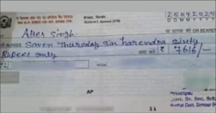 ಬ್ಯಾಂಕ್ ಚೆಕ್ ಪ್ರತಿಯನ್ನು ಬರೆಯುವಾಗ ಕಾಗುಣಿತ ತಪ್ಪಾಗಿ ಬರೆದ ಕಾರಣಕ್ಕೆ ಹಿಮಾಚಲ ಪ್ರದೇಶದ ಸಿರ್ಮೌರ್ ಜಿಲ್ಲೆಯ ರೊನ್ಹತ್ನಲ್ಲಿರುವ ಸರ್ಕಾರಿ ಹಿರಿಯ ಮಾಧ್ಯಮಿಕ ಶಾಲೆಯ ಶಿಕ್ಷಕರೊಬ್ಬರನ್ನು ಅಮಾನತು ಮಾಡಲಾಗಿದೆ. ಆದರೆ ಈ ಅಮಾನತು ಆದೇಶ...