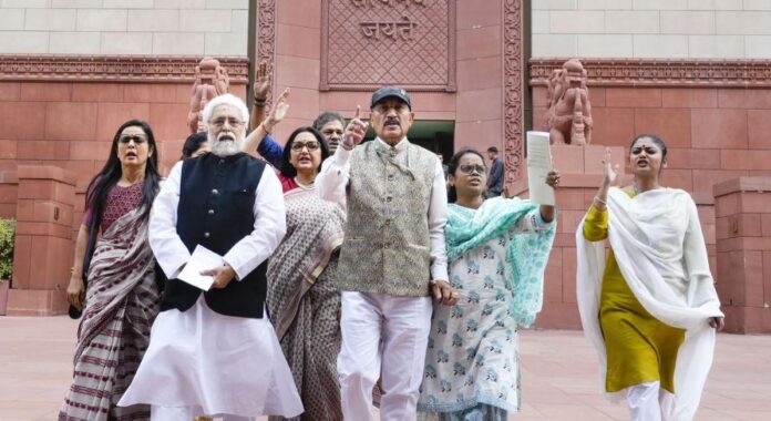 ಆರೋಗ್ಯ ವಿಮೆ, ಜೀವ ವಿಮೆ ಮೇಲೆ ವಿಧಿಸಲಾಗಿರುವ ಜಿಎಸ್‌ಟಿ ತೆರಿಗೆಯನ್ನು ವಾಪಸ್‌ ಪಡೆಯಬೇಕೆಂದು ಆಗ್ರಹಿಸಿ ಪ್ರತಿಪಕ್ಷಗಳ ಇಂಡಿಯಾ ಒಕ್ಕೂಟದ ನಾಯಕರು ಸಂಸತ್ತಿನ ಹೊರಗೆ ಪ್ರತಿಭಟನೆ ನಡೆಸಿದರು. ಈ ಸಂದರ್ಭದಲ್ಲಿ ತೃಣಮೂಲ ಕಾಂಗ್ರೆಸ್‌ನ ರಾಜ್ಯಸಭೆಯ ಸದಸ್ಯ...
