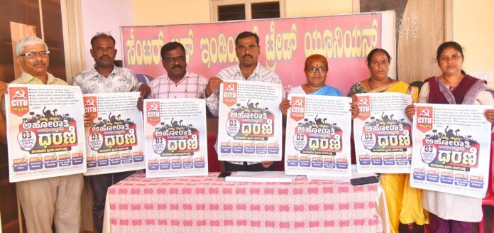 ಸುಪ್ರಿಂ ಕೋರ್ಟಿನ ಆದೇಶದ ಅನ್ವಯ ಎಲ್ಲಾ ವರ್ಗದ ಕಾರ್ಮಿಕರಿಗೆ ಕನಿಷ್ಠ ವೇತನ ಹೆಚ್ಚಳ, ಕರ್ನಾಟಕ ಕಾರ್ಮಿಕರ ಸಮ್ಮೇಳನ ಆಯೋಜನೆ, ಸಮಾನ ಕೆಲಸಕ್ಕೆ ಸಮಾನ ವೇತನ ಇನ್ನಿತರ ಬೇಡಿಕೆಗಳ ಈಡೇರಿಕೆಗೆ ಒತ್ತಾಯಿಸಿ ಸಿಐಟಿಯು ನೇತೃತ್ವದಲ್ಲಿ...