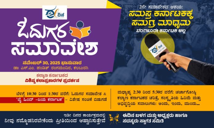 ಕರ್ನಾಟಕದ ಸಮುದಾಯ ಮಾಧ್ಯಮ ʼಈದಿನ’, ಇದೇ ನವೆಂಬರ್ 30ರಂದು ಕಲಬುರಗಿಯಲ್ಲಿ ತನ್ನ 2ನೇ ಓದುಗರ ಸಮಾವೇಶವನ್ನು ನಡೆಸಲು ಯೋಜಿಸಿದೆ.