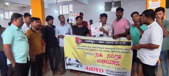 ಕೇಂದ್ರ, ರಾಜ್ಯ ಸರ್ಕಾರದ ಇಲಾಖೆಗಳಲ್ಲಿರುವ ಖಾಲಿ ಹುದ್ದೆ ಭರ್ತಿಗೆ ಎಐಡಿವೈಒ ಆಗ್ರಹ: ಸಹಿ ಅಭಿಯಾನ