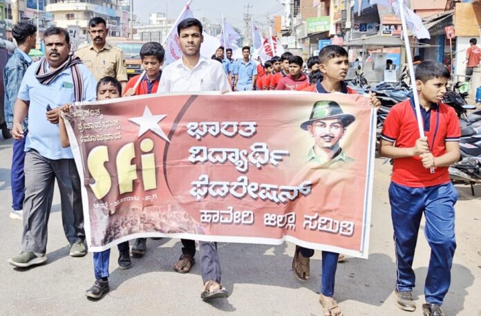 ಸರ್ಕಾರಿ ಕನ್ನಡ ಶಾಲೆಗಳನ್ನು ವಿಲೀನದ ಹೆಸರಿನಲ್ಲಿ ಮುಚ್ಚುವ ರಾಜ್ಯ ಸರ್ಕಾರದ ಹುನ್ನಾರ ವಿರೋಧಿಸಿ, ಸರ್ಕಾರಿ ಶಾಲೆಗಳ ಉಳಿವಿಗಾಗಿ ಆಗ್ರಹಿಸಿ ಭಾರತ ವಿದ್ಯಾರ್ಥಿ ಫೆಡರೇಶನ್ (ಎಸ್ಎಫ್ಐ) ಹಾವೇರಿ ಜಿಲ್ಲಾ ಸಮಿತಿ ನೇತೃತ್ವದಲ್ಲಿ ಮುನಿಸಿಪಲ್ ಮೈದಾನದಿಂದ...
