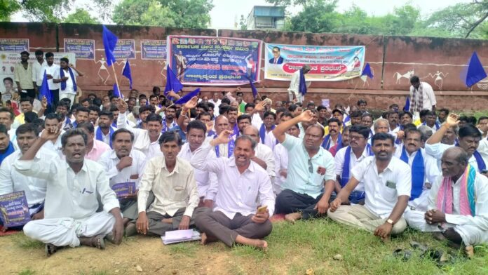 ಸುಪ್ರೀಂ ಕೋರ್ಟ್ ಅದೇಶದಂತೆ ಪರಿಶಿಷ್ಟ ಜಾತಿಗಳ ಒಳ ಮೀಸಲಾತಿ ಜಾರಿಗೊಳಿಸಲು ಆಗ್ರಹಿಸಿ ರಾಜ್ಯಾದ್ಯಂತ ಪ್ರತಿಭಟನೆ ಕರೆಯ ಹಿನ್ನೆಲೆಯಲ್ಲಿ ಕರ್ನಾಟಕ ರಾಜ್ಯ ದಲಿತ ಸಂಘರ್ಷ ಸಮಿತಿ(ಎನ್.ಮೂರ್ತಿ ಬಣ)ವತಿಯಿಂದ ನಗರದ ಟಿಪ್ಪು ಸುಲ್ತಾನ್ ಉದ್ಯಾನವನದಲ್ಲಿ ಪ್ರತಿಭಟನೆ...