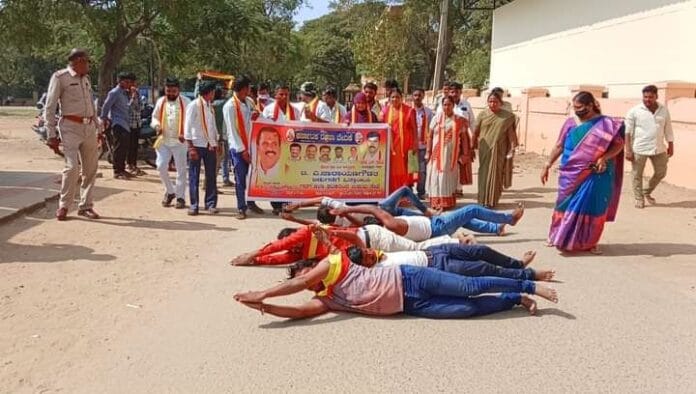 ಗದಗ | ಕರವೇ ರಾಜ್ಯಾಧ್ಯಕ್ಷ ನಾರಾಯಣಗೌಡರ ಬಿಡುಗಡೆಗೆ ಆಗ್ರಹಿಸಿ ಉರುಳು ಸೇವೆ