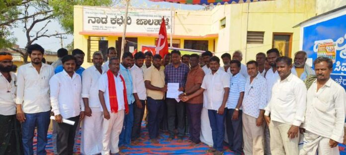 ಫಸಲ್ ಭೀಮಾ ಯೋಜನೆಯಲ್ಲಿ ವಂತಿಗೆ ತುಂಬಿದ ರೈತರಿಗೆ ಬೆಳೆ ಪರಿಹಾರ ನೀಡದೆ ಭಾರೀ ಭ್ರಷ್ಟಾಚಾರ, ಅಕ್ರಮದಲ್ಲಿ ಭಾಗಿಯಾದವರ ವಿರುದ್ಧ ಕ್ರಮ ಜರುಗಿಸಲು ಒತ್ತಾಯಿಸಿ ರಾಯಚೂರು ಜಿಲ್ಲೆಯ ಜಾಲಹಳ್ಳಿ ನಾಡ ಕಾರ್ಯಲಯದ ಮುಂದೆ ರೈತರು...