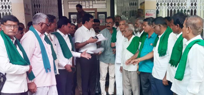 ಬರಗಾಲದ ಪರಿಹಾರ ಹಾಗೂ ಕಬ್ಬಿಗೆ ನ್ಯಾಯಯುತ ಬೆಲೆ ಒದಗಿಸಲು ಆಗ್ರಹಿಸಿ ಕರ್ನಾಟಕ ರಾಜ್ಯ ರೈತ ಸಂಘ ಹಾಗೂ ಹಸಿರು ಸೇನೆಯಿಂದ ವಿಜಯಪುರ ಜಿಲ್ಲೆಯ ಮುದ್ದೇಬಿಹಾಳ ತಾಲೂಕು ತಹಶೀಲ್ದಾರ್ ಕಚೇರಿ ಎದುರು ಪ್ರತಿಭಟನೆ ನಡೆಸಿದರು.