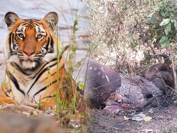 ಉತ್ತರ ಕನ್ನಡ ಜಿಲ್ಲೆಯ ಜೋಯಿಡಾ ತಾಲ್ಲೂಕಿನ ಜಗಲಬೇಟ ಗ್ರಾಮ ಪಂಚಾಯತ್ ವ್ಯಾಪ್ತಿಯ ವೈನಿ ಗ್ರಾಮದ ಸಮೀಪದ ಅರಣ್ಯ ಪ್ರದೇಶದಲ್ಲಿ ಹುಲಿ ದಾಳಿಯಿಂದಾಗಿ ಕಾಡುಕೋಣವೊಂದು ಸಾವನ್ನಪ್ಪಿರುವ ಘಟನೆ ಬೆಳಕಿಗೆ ಬಂದಿದೆ.