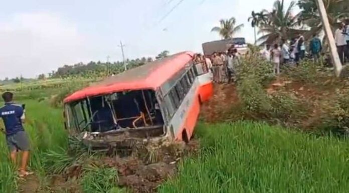 ಭತ್ತದ ಗದ್ದೆಗೆ ಕೆಎಸ್ಆರ್ಟಿಸಿ ಬಸ್ ಉರುಳಿ ಬಿದ್ದಿದ್ದು, 40ಕ್ಕೂ ಹೆಚ್ಚು ಮಂದಿ ಗಾಯಗೊಂಡಿರುವ ಘಟನೆ ಮೈಸೂರು ಜಿಲ್ಲೆ ಕೆ ಆರ್ ನಗರ ತಾಲೂಕಿನ ಕೆಸ್ತೂರು ಕೊಪ್ಪಲು ಗೇಟ್ ಬಳಿ ಸೋಮವಾರ ಬೆಳಿಗ್ಗೆ ನಡೆದಿದೆ.