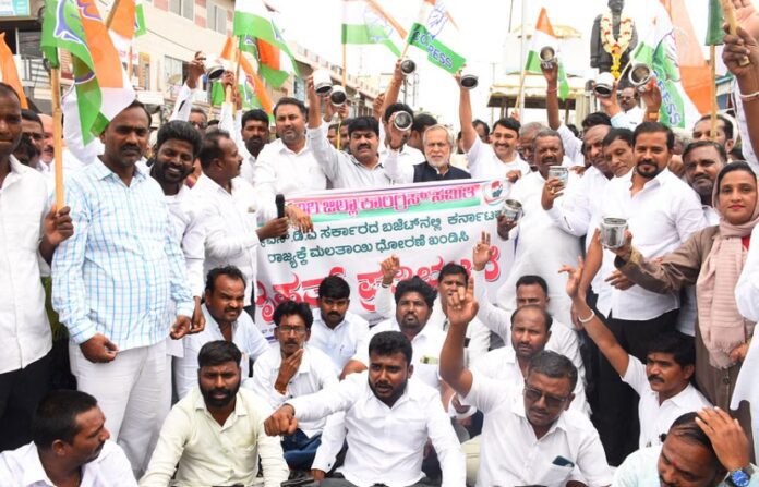 ಕೇಂದ್ರ ಸರಕಾರವು ಎರಡು ಬಾರಿ ಕರ್ನಾಟಕ ರಾಜ್ಯಕ್ಕೆ ಬಜೆಟ್ನಲ್ಲಿ ಮಲತಾಯಿ ಧೋರಣೆ ಅನುಸರಿಸಿದೆ ಎಂದು ಆರೋಪಿಸಿ ರಾಯಚೂರು ಜಿಲ್ಲಾ ಕಾಂಗ್ರೆಸ್ ಸಮಿತಿಯ ವತಿಯಿಂದ ಪ್ರತಿಭಟನೆ ನಡೆಸಲಾಯಿತು.