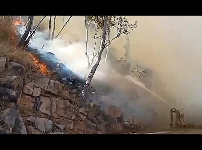 ಚಾಮುಂಡಿ ಬೆಟ್ಟದಲ್ಲಿ ಬೆಂಕಿ ಕಾಣಿಸಿಕೊಂಡಿದೆ. ಅಗ್ನಿಶಾಮಕ ದಳದ ಸಿಬ್ಬಂದಿಗಳು ನಂದಿಸಲು ಹರ ಸಾಹಸ ಪಡುತ್ತಿದ್ದಾರೆ. ಬೆಂಕಿಗೆ ಕಾರಣ ಕಿಡಿಗೇಡಿಗಳು ಬೀಡಿ, ಸಿಗರೇಟು ಸೇವಿಸಲು ಬಳಸಿರುವ ಬೆಂಕಿ ಕಡ್ಡಿ ಸರಿಯಾಗಿ ಆರಿಸದೆ ಎಸೆದಿರುವ ಶಂಕೆ...
