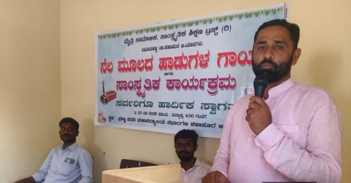 ಮೈತ್ರಿ ಸಾಮಾಜಿಕ, ಸಾಂಸ್ಕೃತಿಕ ಶಿಕ್ಷಣ ಟ್ರಸ್ಟ್ ವಿಭೂತಿಹಳ್ಳಿ ವತಿಯಿಂದ ನೆಲ ಮೂಲದ ಹಾಡುಗಳ ಗಾಯನ ಸಾಂಸ್ಕೃತಿಕ ಕಾರ್ಯಕ್ರಮವನ್ನು ಯಾದಗಿರಿ ಜಿಲ್ಲೆಯ ಶಹಾಪುರ ಪಟ್ಟಣದ ಪ್ರಜ್ಞಾ ಕಾಲೇಜಿನ ಸಭಾಂಗಣದಲ್ಲಿ ಹಮ್ಮಿಕೊಳ್ಳಲಾಗಿತ್ತು.