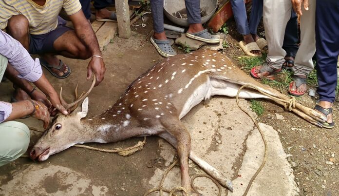 ಶಿವಮೊಗ್ಗ | ಆಹಾರ ಅರಸಿ ನಾಡಿಗೆ ಬಂದ ಜಿಂಕೆಯನ್ನ ರಕ್ಷಿಸಿದ ಗ್ರಾಮಸ್ಥರು