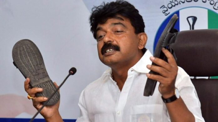 ಜನಸೇನಾ ಪಕ್ಷದ ಸಂಸ್ಥಾಪಕ ಹಾಗೂ ಟಾಲಿವುಡ್ ನಟ ಪವನ್ ಕಲ್ಯಾಣ್ ಅವರಿಗೆ ವೈಎಸ್ಆರ್ಸಿಪಿ ಶಾಸಕರೊಬ್ಬರು ತಮ್ಮ ಎರಡೂ ಚಪ್ಪಲಿಗಳನ್ನು ತೋರಿಸಿ ಎಚ್ಚರಿಕೆ ಸಂದೇಶ ನೀಡಿದ ಘಟನೆ ಹೈದರಾಬಾದ್ನಲ್ಲಿ ನಡೆದಿದೆ.