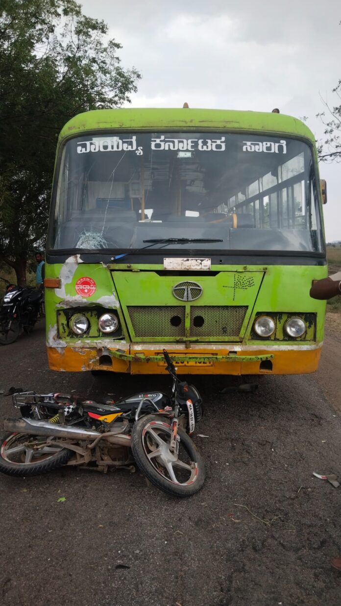 ಸಾರಿಗೆ ಬಸ್ ಹಾಗೂ ಬೈಕ್ ನಡುವೆ ಡಿಕ್ಕಿಯಾಗಿ ಅಪಘಾತ ಸಂಭವಿಸಿದ್ದು, ಬೈಕ್ ಸವಾರ ಸ್ಥಳದಲ್ಲೇ ಸಾವನ್ನಪ್ಪಿದ ಘಟನೆ ಸಿರವಾರ ತಾಲೂಕಿನ ಹಿರೇಹಳಗಿ ಗ್ರಾಮದ ಹೊರವಲಯದಲ್ಲಿ ನಡೆದಿದೆ.