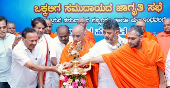 ಸೆ.22ರಿಂದ ಕರ್ನಾಟಕ ಹಿಂದುಳಿದ ವರ್ಗಗಳ ಆಯೋಗವು ಕೈಗೊಳ್ಳಲಿರುವ ಸಾಮಾಜಿಕ ಮತ್ತು ಶೈಕ್ಷಣಿಕ ಸ್ಥಿತಿಗತಿ ಸಮೀಕ್ಷೆ ಹಿನ್ನೆಲೆಯಲ್ಲಿ ಒಕ್ಕಲಿಗ ಸಮುದಾಯದ ಸರ್ವಪಕ್ಷಗಳ ಮುಖಂಡರು ಬೆಂಗಳೂರಿನ ವಿಜಯನಗರದ ಆದಿ ಚುಂಚನಗಿರಿ ಶಾಖಾ ಮಠದಲ್ಲಿ ಶನಿವಾರ ನಿರ್ಮಲಾನಂದನಾಥ...