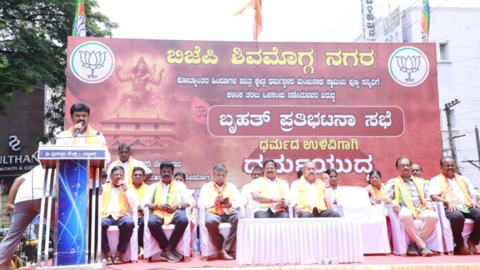 ಎಸ್ಐಟಿ ತನಿಖೆಯನ್ನಿಟ್ಟುಕೊಂಡು ಧರ್ಮಸ್ಥಳ ಕ್ಷೇತ್ರಕ್ಕೆ ಅಪಚಾರ ಮಾಡಲಾಗುತ್ತಿದೆ ಎಂದು ಆರೋಪಿಸಿ ಶಿವಮೊಗ್ಗದಲ್ಲಿ ಬಿಜೆಪಿ ಪ್ರತಿಭಟನೆ ಹಮ್ಮಿಕೊಂಡಿತ್ತು.