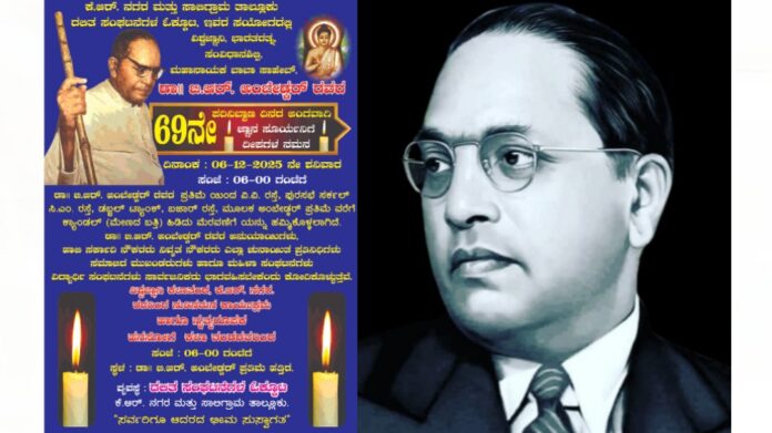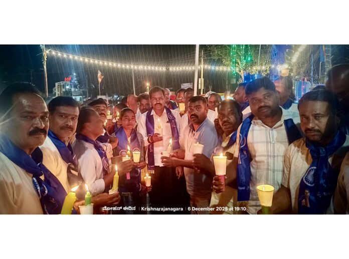 ಮೈಸೂರು ಜಿಲ್ಲೆ ಕೃಷ್ಣರಾಜನಗರ ಹಾಗೂ ಸಾಲಿಗ್ರಾಮ ತಾಲ್ಲೂಕು ದಲಿತ ಸಂಘಟನೆಗಳ ಒಕ್ಕೂಟದಿಂದ ಸಂವಿಧಾನ ಶಿಲ್ಪಿ ಡಾ. ಬಿ.ಆರ್. ಅಂಬೇಡ್ಕರ್ ಅವರ 69 ನೇ ವರ್ಷದ ಪರಿನಿಬ್ಬಾಣದ ಅಂಗವಾಗಿ ದೀಪ ನಮನ ಕಾರ್ಯಕ್ರಮ ಹಮ್ಮಿಕೊಂಡಿದೆ.