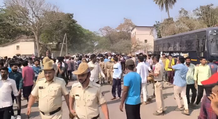 ಧಾರವಾಡದಲ್ಲಿ ನಡೆಯುತ್ತಿರುವ ಉದ್ಯೋಗಾಕಾಂಕ್ಷಿಗಳ ಬೃಹತ್ ಹೋರಾಟದಲ್ಲಿ ಉದ್ರಿಕ್ತರಿಂದ ಕಲ್ಲು ತೂರಾಟ ನಡೆದಿದ್ದು, ವಿದ್ಯಾಗಿರಿ ಠಾಣೆ ಇನ್ಸಪೆಕ್ಟರ್ ರಫೀಕ್ ತಹಸೀಲ್ದಾರ್ ಅವರ ತಲೆಗೆ ಕಲ್ಲಿನೇಟು ಬಿದ್ದು ಗಾಯವಾಗಿದೆ.