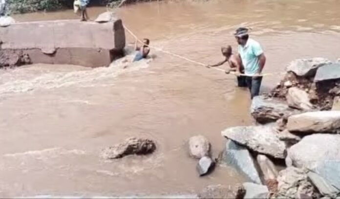 ಧಾರಾಕಾರ ಸುರಿಯುತ್ತಿರುವ ಮಳೆಗೆ ಧಾರವಾಡ ಜಿಲ್ಲೆಯ ಅಳ್ನಾವರ ತಾಲೂಕಿನ ಬೆಣಚಿ ಮತ್ತು ಬಾಲಗೇರಿ ಗ್ರಾಮಗಳ ನಡುವೆ ಇದ್ದ ಸೇತುವೆ ನೀರಿನ ರಬಸಕ್ಕೆ ಕೊಚ್ಚಿ ಹೋಗಿದ್ದು, ಎರಡೂ ಗ್ರಾಮಸ್ಥರು ಹಗ್ಗದ ಆಸರೆಯಿಂದ ನದಿ ದಾಟುವ...