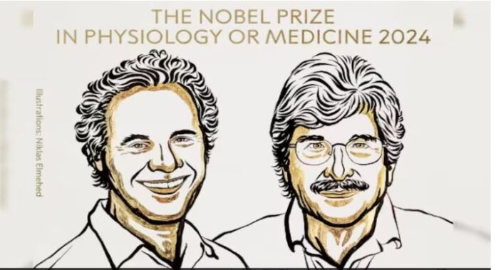 ಮೈಕ್ರೊಆರ್ಎನ್ಎ ಮತ್ತು ಅದರ ನಂತರದ ಪ್ರತಿಲೇಖನ ಜೀನ್ ನಿಯಂತ್ರಣದಲ್ಲಿ ಮೈಕ್ರೊಆರ್ಎನ್ಎ ಪಾತ್ರದ ಅಧ್ಯಯನಕ್ಕಾಗಿ ಅಮೆರಿಕದ ವಿಜ್ಞಾನಿಗಳಾದ ವಿಕ್ಟರ್ ಆಂಬ್ರೋಸ್ ಮತ್ತು ಗ್ಯಾರಿ ರುವ್ಕುನ್ ಅವರಿಗೆ 2024ರ ಸಾಲಿನ ಶರೀರಶಾಸ್ತ್ರ ಅಥವಾ ವೈದ್ಯಶಾಸ್ತ್ರಕ್ಕೆ ನೀಡುವ...