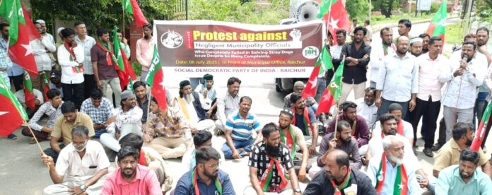 ನಗರದಲ್ಲಿ ಬೀದಿನಾಯಿಗಳ ಹಾವಳಿಯನ್ನು ತಡೆಗಟ್ಟಲು ವಿಫಲವಾದ ಮಹಾನಗರ ಪಾಲಿಕೆ ವಿರುದ್ದ ಎಸ್ಡಿಪಿಐ ಜಿಲ್ಲಾ ಘಟಕದ ವತಿಯಿಂದ ಮಂಗಳವಾರ ಪಾಲಿಕೆಯ ಆಯುಕ್ತರ ಕಚೇರಿ (ಹಳೆಯ ಜಿಲ್ಲಾಧಿಕಾರಿ ಕಚೇರಿ)ಮುಂದೆ ಪ್ರತಿಭಟನೆ ನಡೆಸಿ ಆಕ್ರೋಶ ವ್ಯಕ್ತಪಡಿಸಿದರು.