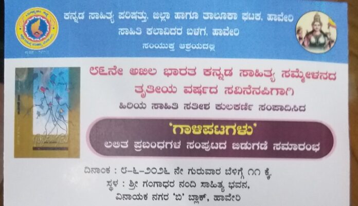 ಕನ್ನಡ ಸಾಹಿತ್ಯ ಪರಿಷತ್ತು ಮತ್ತು ಸಾಹಿತಿ ಕಲಾವಿದರ ಬಳಗದ ಸಂಯುಕ್ತ ಆಶ್ರಯದಲ್ಲಿ ದಿ ಜನೆವರಿ 8ಕ್ಕೆ ಗುರುವಾರ ಬೆಳಿಗ್ಗೆ ೧೧ ಗಂಟೆಗೆ ಇಲ್ಲಿಯ ವಿನಾಯಕ ನಗರದ ಬಿ ಬ್ಲಾಕ್ ನಲ್ಲಿರುವ ಗಂಗಾಧರ ನಂದಿ...