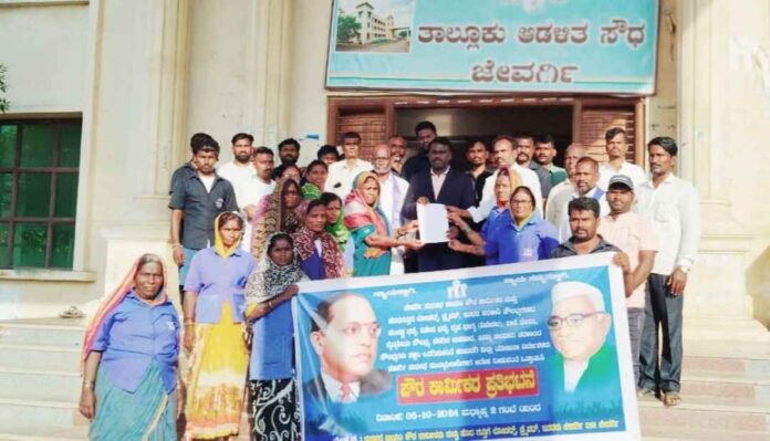 ಜೇವರ್ಗಿ ಪುರಸಭೆಯ ಪೌರಕಾರ್ಮಿಕರು ಮತ್ತು ಸ್ವಚ್ಛತಾ ಸಿಬ್ಬಂದಿಗೆ ಸರ್ಕಾರದ ಆದೇಶದಂತೆ ಹೆಚ್ಚುವರಿಯಾಗಿ ವೇತನ ಪಾವತಿ, ಎರಡು ಸಾವಿರ ಸಂಕಷ್ಟ ಭತ್ಯೆ, ಸಮವಸ್ತ್ರ ಸೇರಿದಂತೆ ರಕ್ಷಣಾ ಸಾಮಗ್ರಿಗಳನ್ನು ಒದಗಿಸಿ, ಬಾಕಿ ಉಳಿದಿರುವ ಐದು...