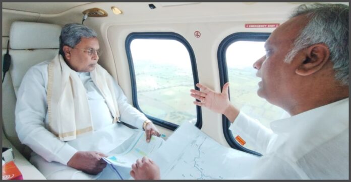 ಬೀದರ ಜಿಲ್ಲೆಯಲ್ಲಿ ಸುರಿದ ಅತಿವೃಷ್ಟಿ ಹಾಗೂ ಮಾಂಜ್ರಾ ನದಿ ಮತ್ತು ಕಾರಂಜಾ ಜಲಾಶಯದಿಂದ ಉಂಟಾದ ಪ್ರವಾಹ ಪರಿಸ್ಥಿತಿಯನ್ನು ಸಿಎಂ ಸಿದ್ದರಾಮಯ್ಯ ಅವರು ಮಂಗಳವಾರ ವೈಮಾನಿಕ ಸಮೀಕ್ಷೆ ನಡೆಸಿ ಅವಲೋಕನ ನಡೆಸಿದರು.