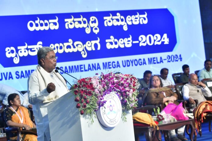 ಹೊಸದಾಗಿ 58 ಜಿಟಿಡಿಸಿಗಳ ಸ್ಥಾಪನೆ: ಬೃಹತ್ ಉದ್ಯೋಗ ಮೇಳ ಉದ್ಘಾಟಿಸಿ ಸಿಎಂ ಘೋಷಣೆ ಅರಮನೆ ಮೈದಾನದಲ್ಲಿ ನಡೆಯುತ್ತಿರುವ ಬೃಹತ್ ಯುವ ಸಮೃದ್ಧಿ, ಉದ್ಯೋಗ ಸಮ್ಮೇಳನ "ವರ್ಷಕ್ಕೆ 2 ಕೋಟಿ ಉದ್ಯೋಗ ಸೃಷ್ಟಿಯ ಭರವಸೆ...
