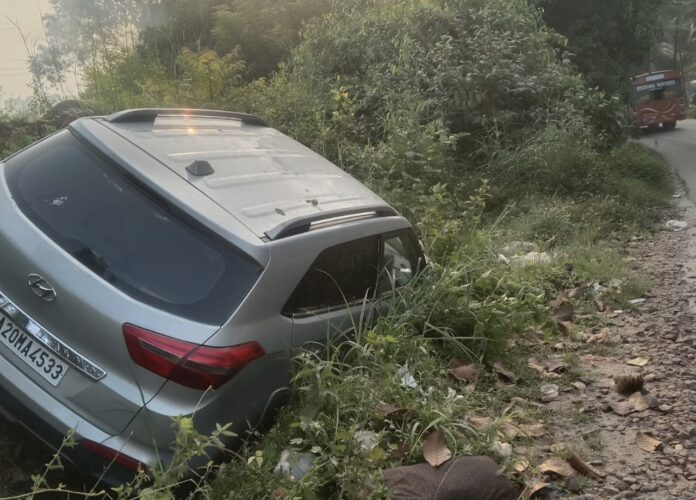 ಉಡುಪಿ | ಮೋರಿಗೆ ಬಿದ್ದ ಕಾರು, ಪ್ರಯಾಣಿಕರು ಅಪಾಯದಿಂದ ಪಾರು