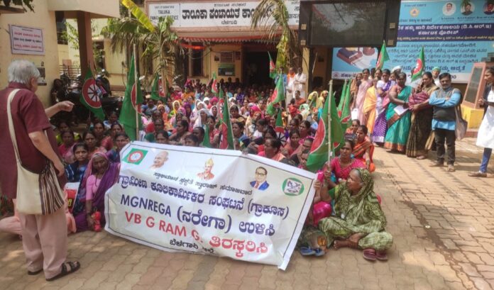 ಗ್ರಾಮೀಣ ಕಾರ್ಮಿಕರ ಉದ್ಯೋಗದ ಹಕ್ಕಾಗಿದ್ದ ಮನರೇಗಾ ಕಾನೂನನ್ನು ರದ್ದುಗೊಳಿಸಿ ಉದ್ಯೋಗವನ್ನು ಕೇಂದ್ರ ಸರಕಾರದ ಮರ್ಜಿಗೆ ಒಳಪಡಿಸಿ ಕಾರ್ಮಿಕರನ್ನು ಗುಲಾಮರನ್ನಾಗಿಸುವ ಹೊಸ ಕಾನೂನು ವಿಬಿ-ಜಿರಾಮ್ಜಿ ಸಂಪೂರ್ಣ ಕಾರ್ಮಿಕ ವಿರೋಧಿಯಾಗಿದ್ದು, ಕೂಡಲೇ ಹಿಂಪಡೆಯಬೇಕೆಂದು ಮನರೇಗಾ ಉಳಿಸಿ...