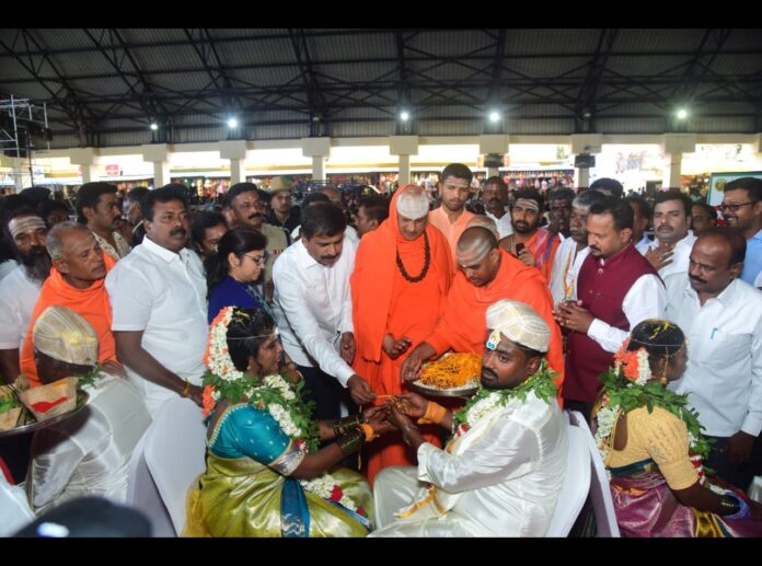 ಚಾಮರಾಜನಗರ ಜಿಲ್ಲೆ, ಹನೂರು ತಾಲೂಕಿನ ಮಲೆ ಮಹದೇಶ್ವರ ಸ್ವಾಮಿ ದೇವಸ್ಥಾನದ ರಂಗಮಂದಿರ ಆವರಣದಲ್ಲಿ ಸೋಮವಾರದಂದು ಪ್ರಾಧಿಕಾರದ ವತಿಯಿಂದ ಉಚಿತ ಸಾಮೂಹಿಕ ವಿವಾಹ ನಡೆಯಿತು. ಇದೇ ಸಂದರ್ಭದಲ್ಲಿ 93 ನವ ಜೋಡಿಗಳು ವೈವಾಹಿಕ ಜೀವನಕ್ಕೆ...