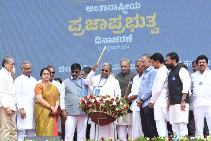 ಬೀದರ್ನಿಂದ ಚಾಮರಾಜನಗರದವರೆಗೆ ರಾಜ್ಯಾದ್ಯಂತ 2,500 ಕಿ.ಮೀ ಮಾನವ ಸರಪಳಿ ರಚಿಸಿ ಅಂತಾರಾಷ್ಟ್ರೀಯ ಪ್ರಜಾಪ್ರಭುತ್ವ ದಿನಾಚರಣೆಗೆ ರಾಜ್ಯ ಸರ್ಕಾರ ಕರೆಕೊಟ್ಟಿದೆ. ಭಾನುವಾರ ಮಾನವ ಸರಪಳಿ ರಚಿಸಲಾಗುತ್ತಿದೆ. ಬೆಂಗಳೂರಿನಲ್ಲಿ ನಡೆದ ಕಾರ್ಯಕ್ರಮದಲ್ಲಿ ಮುಖ್ಯಮಂತ್ರಿ ಸಿದ್ದರಾಮಯ್ಯ ಅವರು...